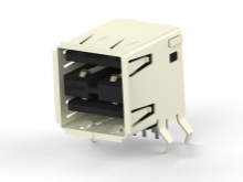 The RJHSE-5381 is a 8-position single-port RJ45 high speed Modular Jack, RJHSE series, gold-plated phosphor bronze contacts and UL94V-0 flammability-rated black high temperature thermoplastic housing, right angle mount, yellow left and green right LED. The RJHSE inverted modular jack with superior EMI performance supports Ethernet protocols. Shielding available for increased EMI performance and LEDs for link activity and network speed verification.