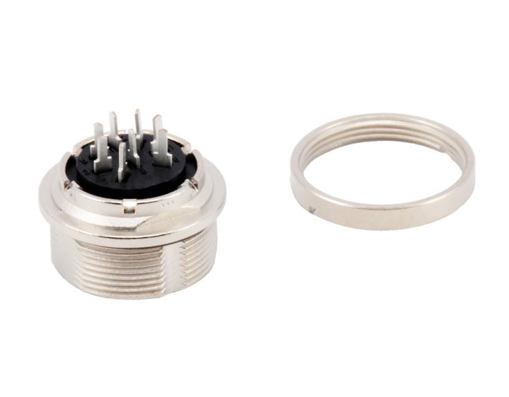 M16 IP67 Female panel mount connector, Contacts: 8 (08-a), unshielded, THT, IP68, UL, AISG...