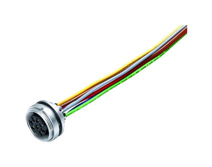 M16 IP67 Female panel mount connector, Contacts: 8 (08-a), unshielded, single wires, IP68,...