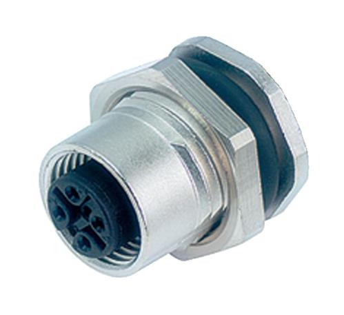 M12-A Female panel mount connector, Contacts: 4, unshielded, solder, IP68, UL, PG 9, front...