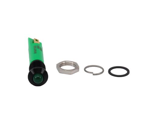 The Q8P1BXXG06E is a green, 6 VDC fixed light LED indicator for Ø8 mm panel mounting, feat...