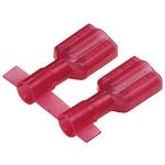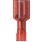 The vibration resistant female disconnect is made of brass and is tin-plated. It is fully insulated in a red, standard receptacle nylon housing. It has a tab size of 0.187 x 0.020" (4.8 x 0.5 mm) and supports a wire range of 22-18 AWG (0.5-1.0 mm²). It is