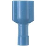The vibration resistant male disconnect is made of brass and is nickel-plated. It is fully insulated in blue premium nylon housing. It has a tab size of 0.250 x 0.032" (6.3 x 0.8 mm) and supports a wire range of 16-14 AWG (1.5-2.5 mm²). It is 0.9" (22.9 m