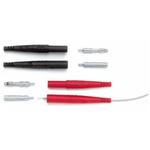 The 6383-0 is a user-installable, black shrouded banana plug designed for creating secure connections with 4mm shrouded banana jacks. It can be attached to 18 to 22 AWG stranded wire by either crimping or soldering, accommodating insulation diameters from 0.060” to 0.150”. The plug is rated for a maximum current of 15A with 18 AWG wire and an operating voltage of 300V in handheld applications. Constructed with a nickel-plated brass and beryllium copper plug and Santoprene insulation, it operates reliably in temperatures from -29°C to 135°C. When properly assembled, it complies with IEC1010 CAT II 300V standards, making it ideal for custom test leads used with digital multimeters and other test equipment.