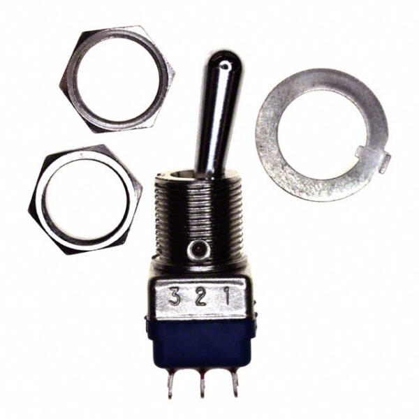 Toggle Switch - DPDT - On-Off-Mom - 4 A - 125 VAC - 30 VDC - Standard Round Actuator - Sil...