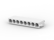 The 640586-1 is a 8-position 1-row Universal MATE-N-LOK In-line Plug housing made of nylon GF body and natural in color. It is suitable for use with the universal MATE-N-LOK cap or header. The universal MATE-N-LOK connector features sockets can be intermixed in the same housing, contacts completely enclosed in housings and the dual locking lances provide optimum contact stability. It mates with universal MATE-N-LOK II housings. Harness to PC board capability using socket headers.