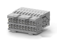 The 6469028-1 is a 40-position 4-row 10-column shielded right angle female hard metric Backplane Connector with gold-plated copper-nickel-silicon contacts and grey GF polyester housing. The receptacle supports press-fit termination method and HM-Zd interface. Polarization mating alignment type connector is applicable to printed circuit board. ≤12Gbps Data rate With grounding contact Applications Industrial
