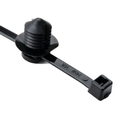 2-Piece Cable Tie/Fir Tree Mount - 8.0"L - 0.38 - 0.39" Hole Dia - 50lb - PA66HS - Black -...