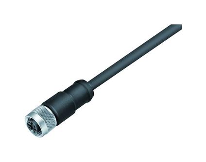 M12-A Female cable connector, Contacts: 4, shielded, moulded on the cable, IP67, UL, PUR, ...