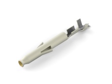 The RA18-10 is a ring terminal insulated with high dielectric-strength nylon for wire range #22 - #16 AWG. An inner bronze insulation grip sleeve lengthens the flexing radius of the conductor and eliminates conductor creep. Length .89 inches, .31 inches width, maximum insulation .136 inches, bolt hole #10. The terminal is high-conductivity electrolytic copper, electro-tin plated, with color-coded insulation. Recommended tool ERG2006.