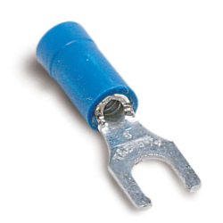 Thomas & BettsSta-Con® Vinyl-Insulated Locking Fork Terminal - Wire Range #18-#14AWG - Material Copper - Tin-Plated Finish - Color Blue - Bolt Hole #8 ...
