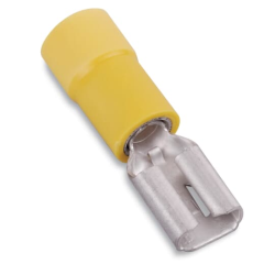 The RB877-200 is a ring terminal with expanded vinyl-insulation, for wire range #18 - #14 AWG. Extra-length PVC sleeve offers extra protection. Length .97 inches, .31 inches width, maximum insulation .200 inches, bolt hole #10. The terminal is high-conductivity electrolytic copper, electro-tin plated, with color-coded insulation. Recommended tool ERG4001.